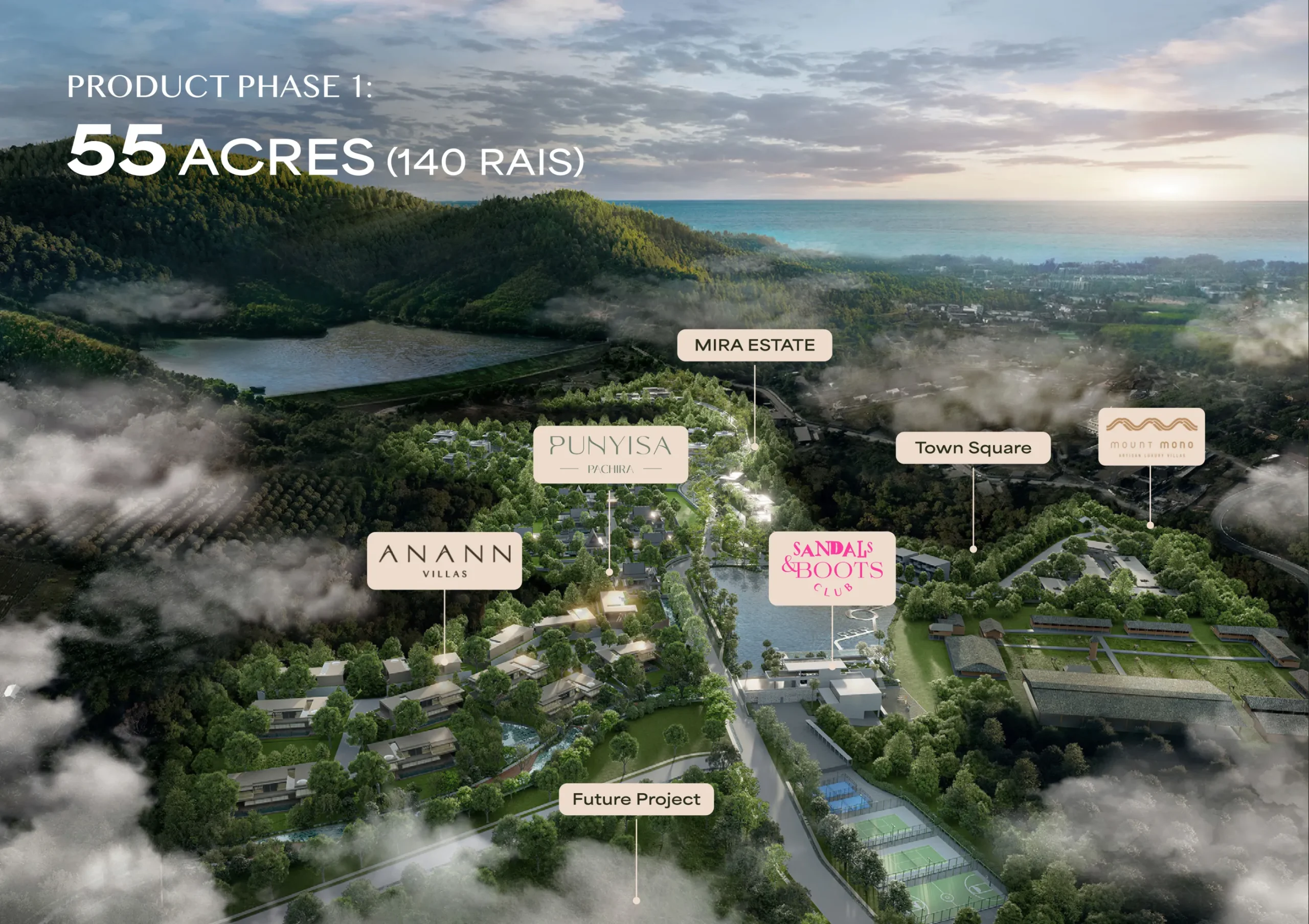 Set within the 220-acre MIRA valley ecosystem with Town Square, cycling routes, a 3 km jogging track by Bang Niao reservoir, equestrian and climbing facilities, plus kayaking. Bang Tao Beach is 8 km away.