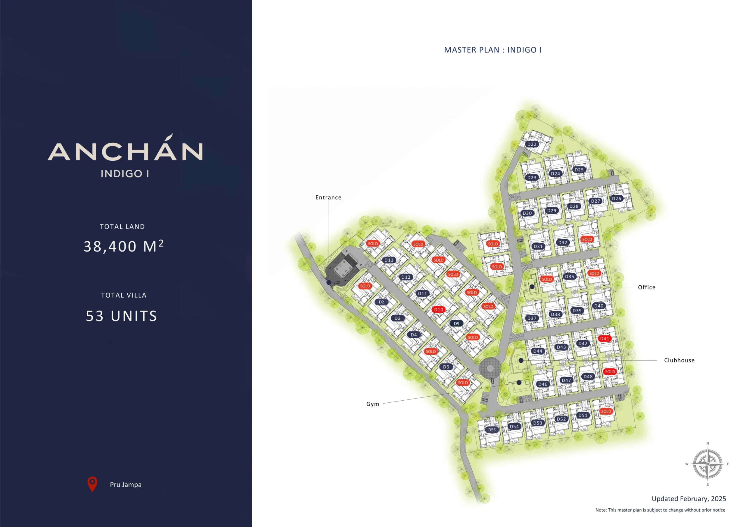 Master plan showing Indigo II villas with sold labels