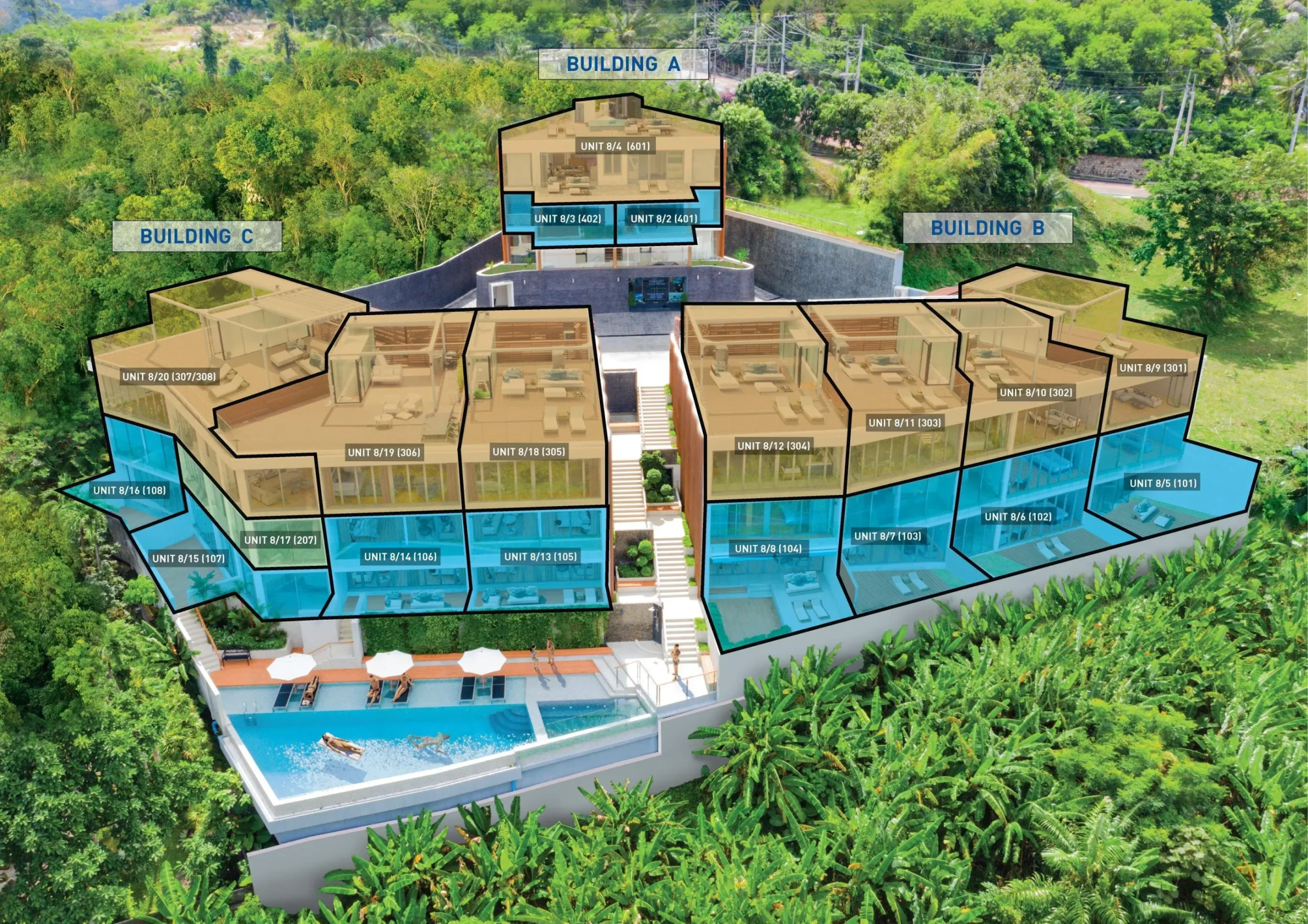 Bluepoint Condominium is a hilltop project above Patong, completed in 06.2021, with sea, pool, and garden outlooks and ready-to-move-in units.