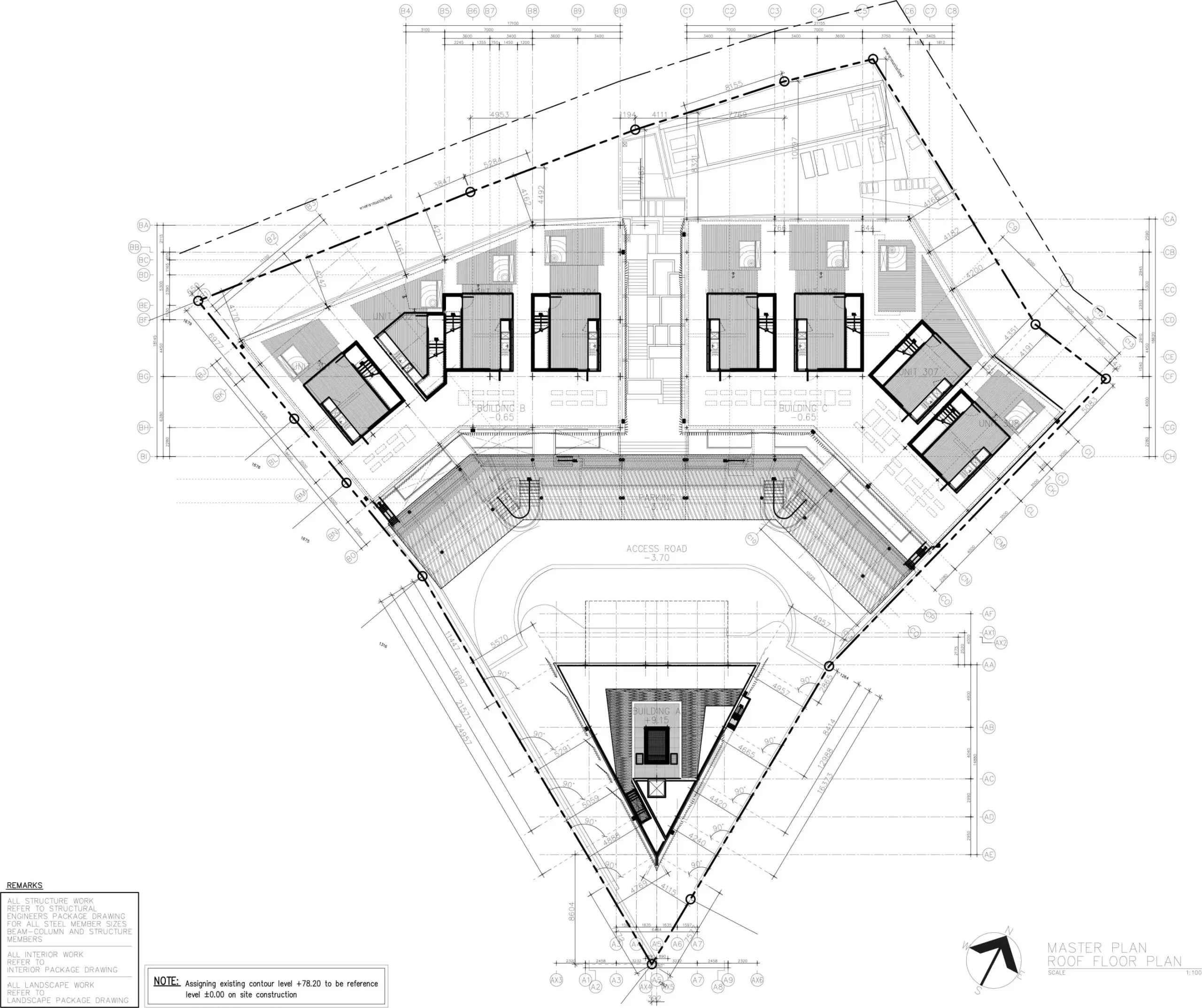 - Three low-rise buildings; 3 floors plus rooftop level