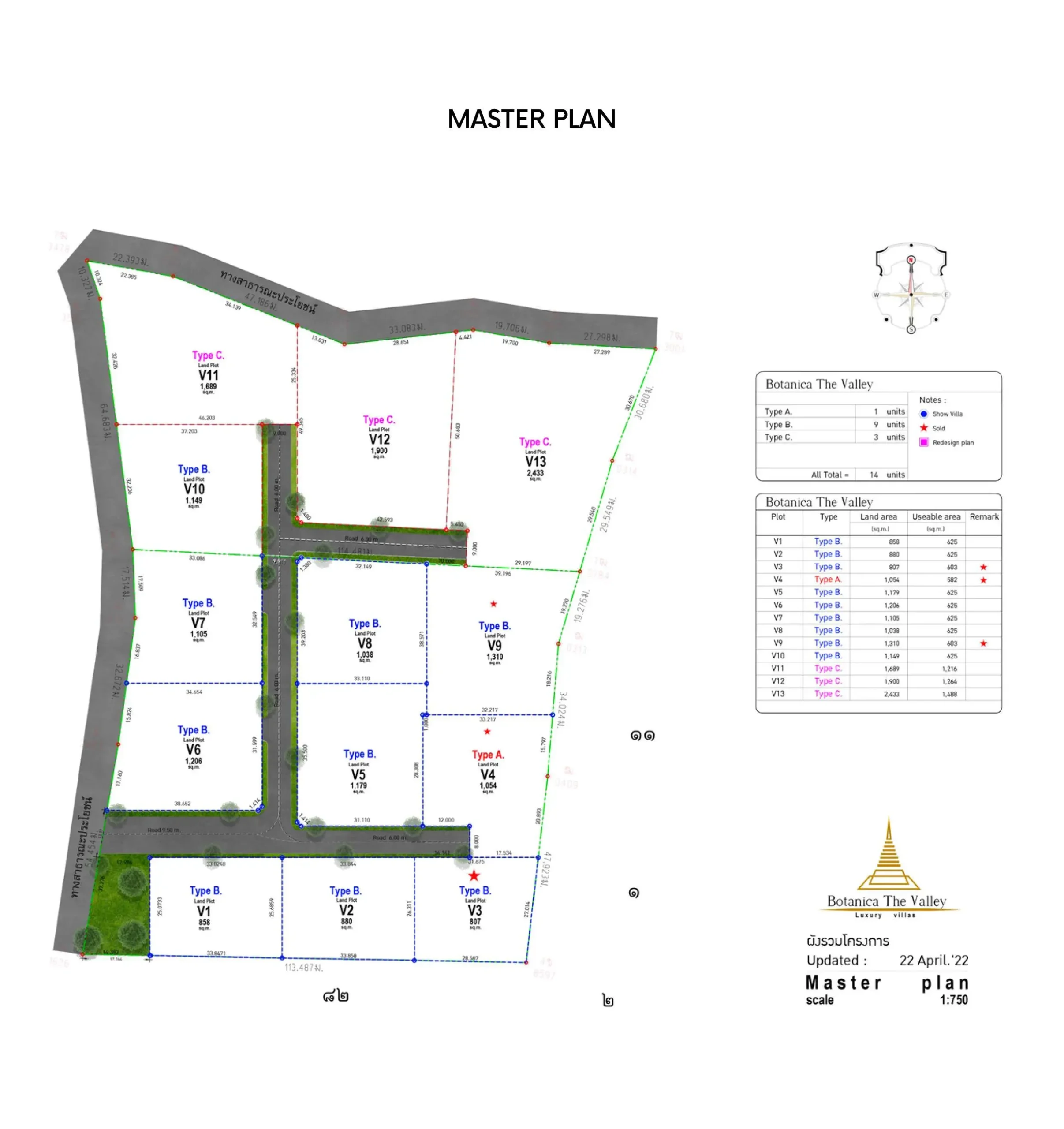 Outdoor master plan with numbered plots and roads