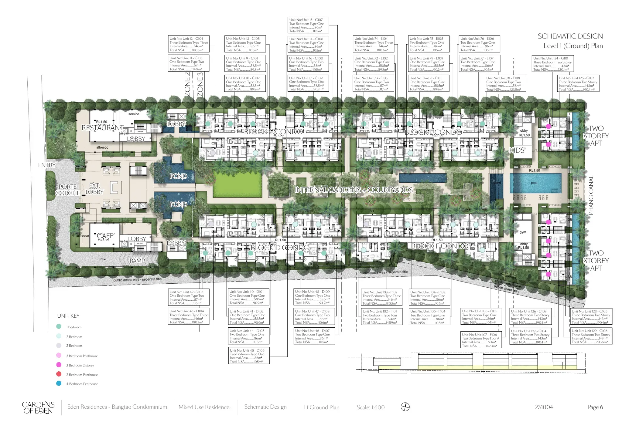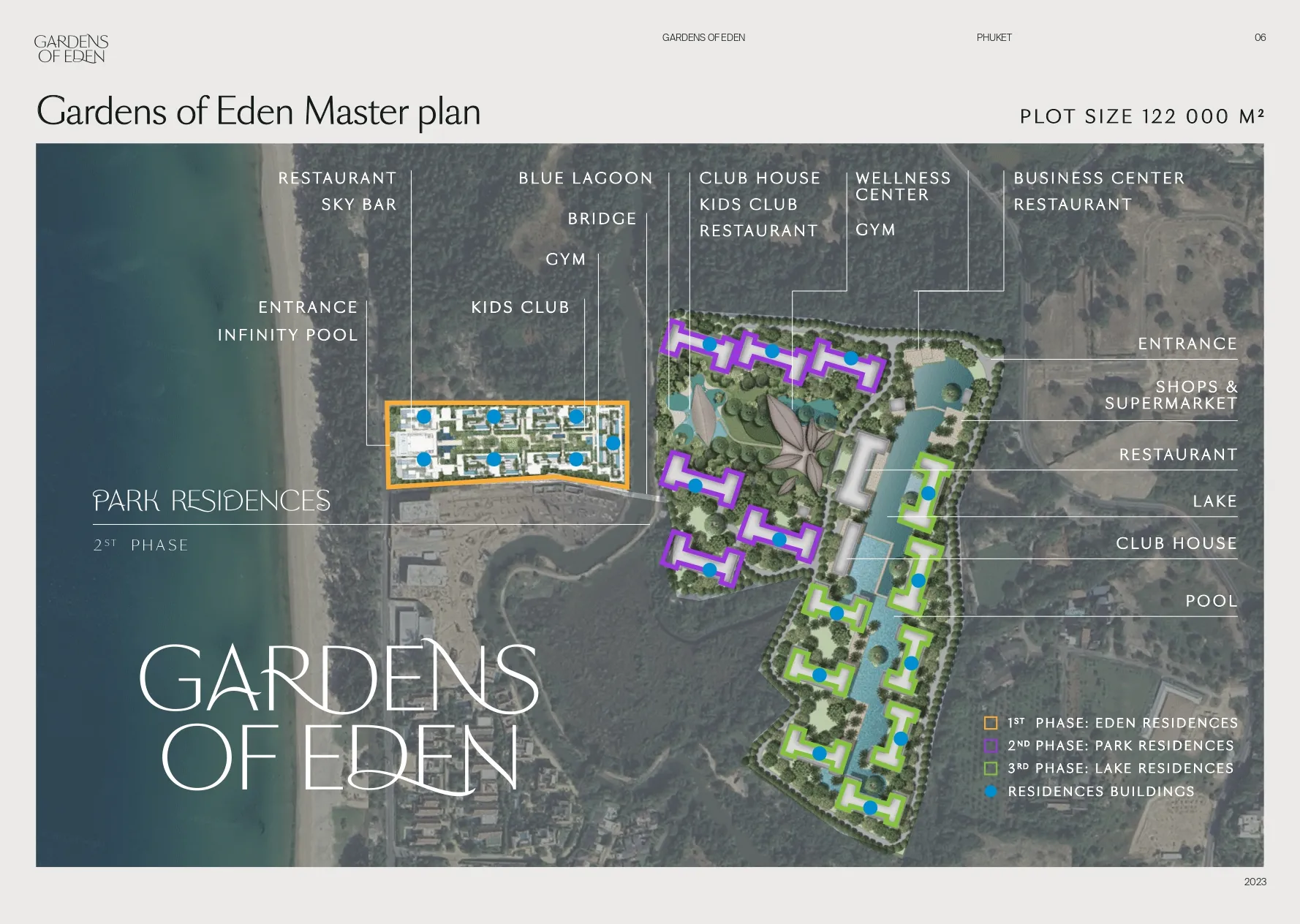 Gardens of Eden is a coastal residential project in Layan, Phuket, featuring a 4-storey format with tranquil garden outlooks and managed services. Ownership is available as Freehold or Leasehold, with 24/7 CCTV for security. Completion is scheduled for 12.2026.