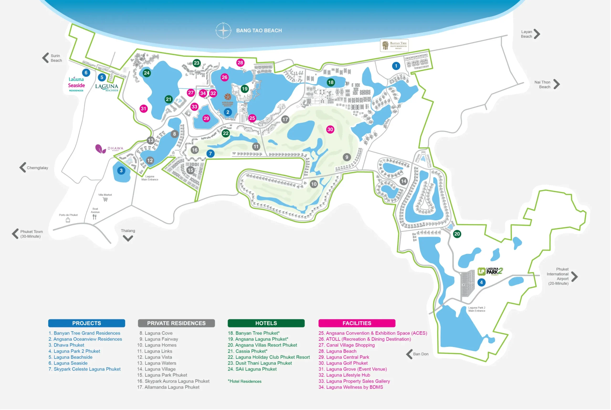 Nearest Landmark: Bang Tao Beach nearby; Laguna offers restaurants, tennis courts, shops, and landscaped public spaces.