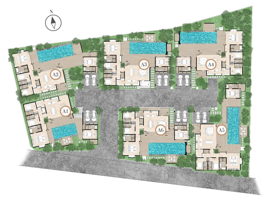 Nakara Grand Luxury Villas feature single-storey layouts on flat terrain with pleasant garden and pool outlooks. Off-plan construction ⓘ is underway, and ownership is available as Freehold/Leasehold. On-site management and CCTV-backed security add confidence for personal use or investment.