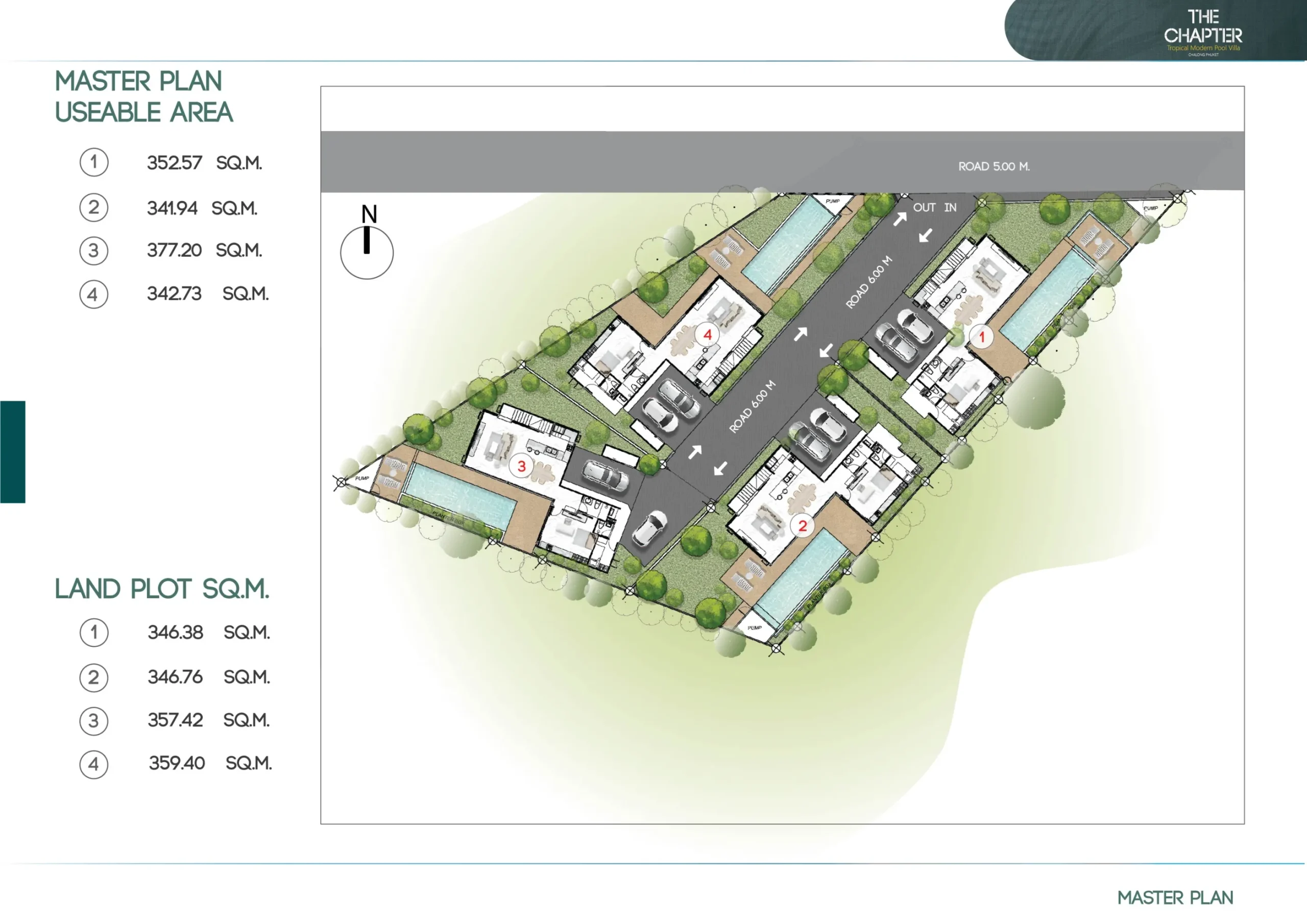 The Chapter Pool Villas is an off-plan collection of two-storey homes in Chalong, Phuket, planned with pool and garden outlooks on flat terrain and Freehold ownership.