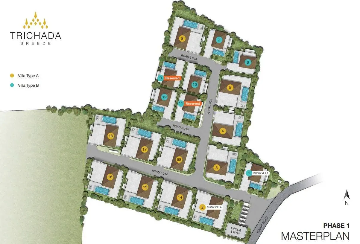 Trichada Breeze offers single-level villas in Bang Tao, Phuket, combining practical layouts with pool and garden outlooks and professional on-site services.