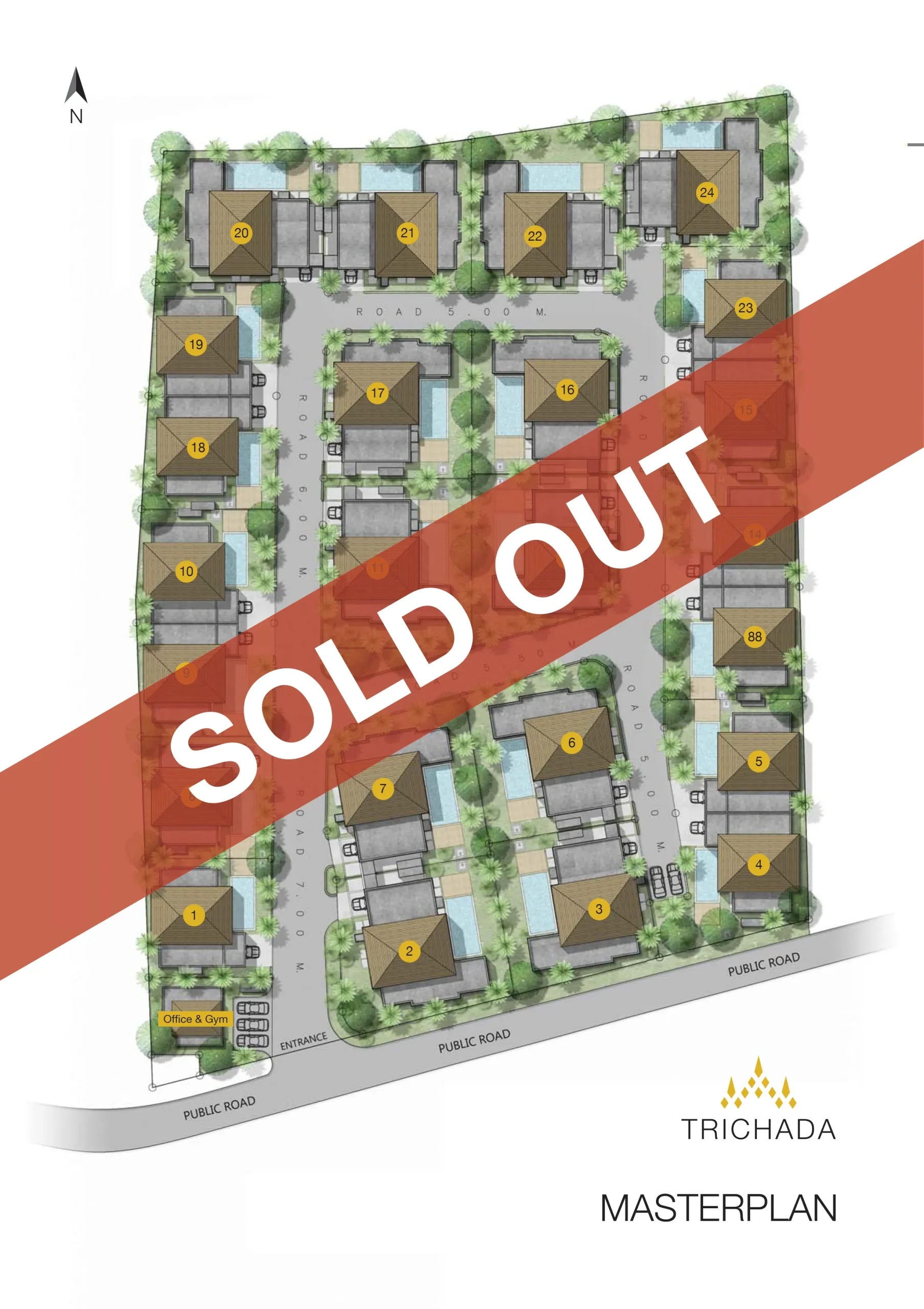 Trichada is set in Bang Tao, close to the Laguna area and the quiet Layan shoreline. Single-storey layouts pair with a pool-and-garden ambiance, suitable for family living or a mixed personal-and-rental strategy.