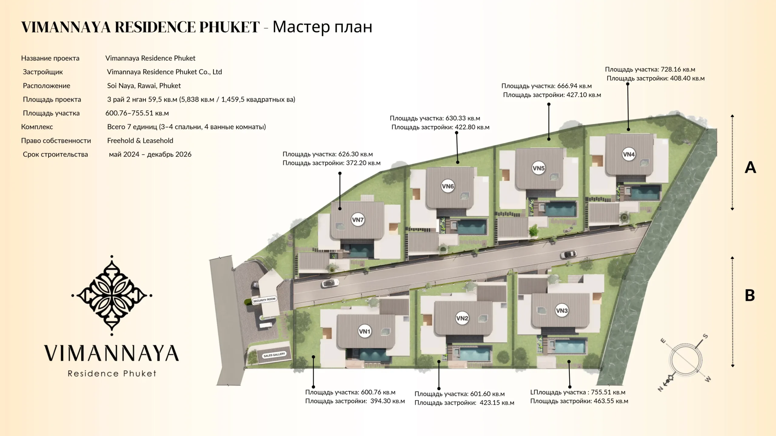 Vimannaya Residence in Nai Harn, Phuket pairs single-storey layouts with pool and garden outlooks, on-site security, and professional management. Completion is planned for 12.2026, with ownership offered as Freehold/Leasehold.