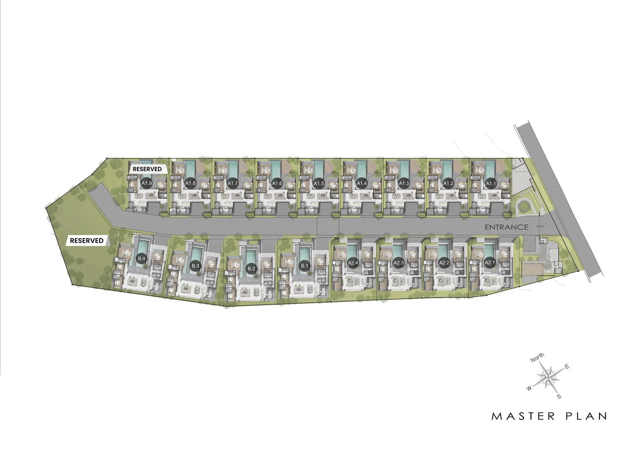 Современный тропический стиль с лёгкими интерьерами, акцентами на дерево и камень и адаптируемым зонированием на 1–2 этажах. Крупные проёмы выводят к зелени и горам; виды ориентированы на бассейн и сад. Статус вне плана и варианты Фрихолд/Лизхолд дают гибкость под личные и инвестиционные цели.