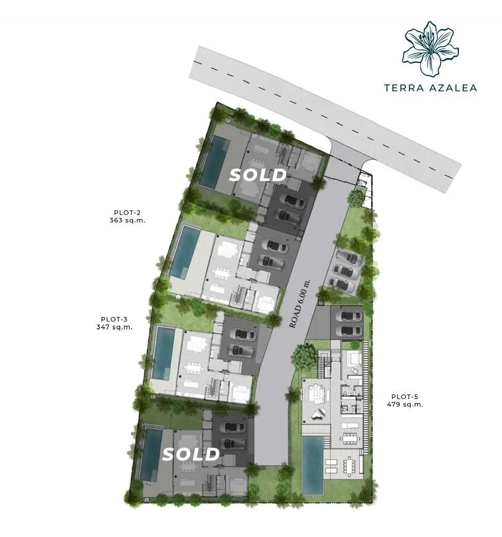 Двухэтажные виллы с ориентацией на бассейн и сад на равнинном участке. Внеплановая стадия, при комплексе — менеджмент, охрана и CCTV. Владение: Фрихолд/Лизхолд; сроки сдачи пока не объявлены.