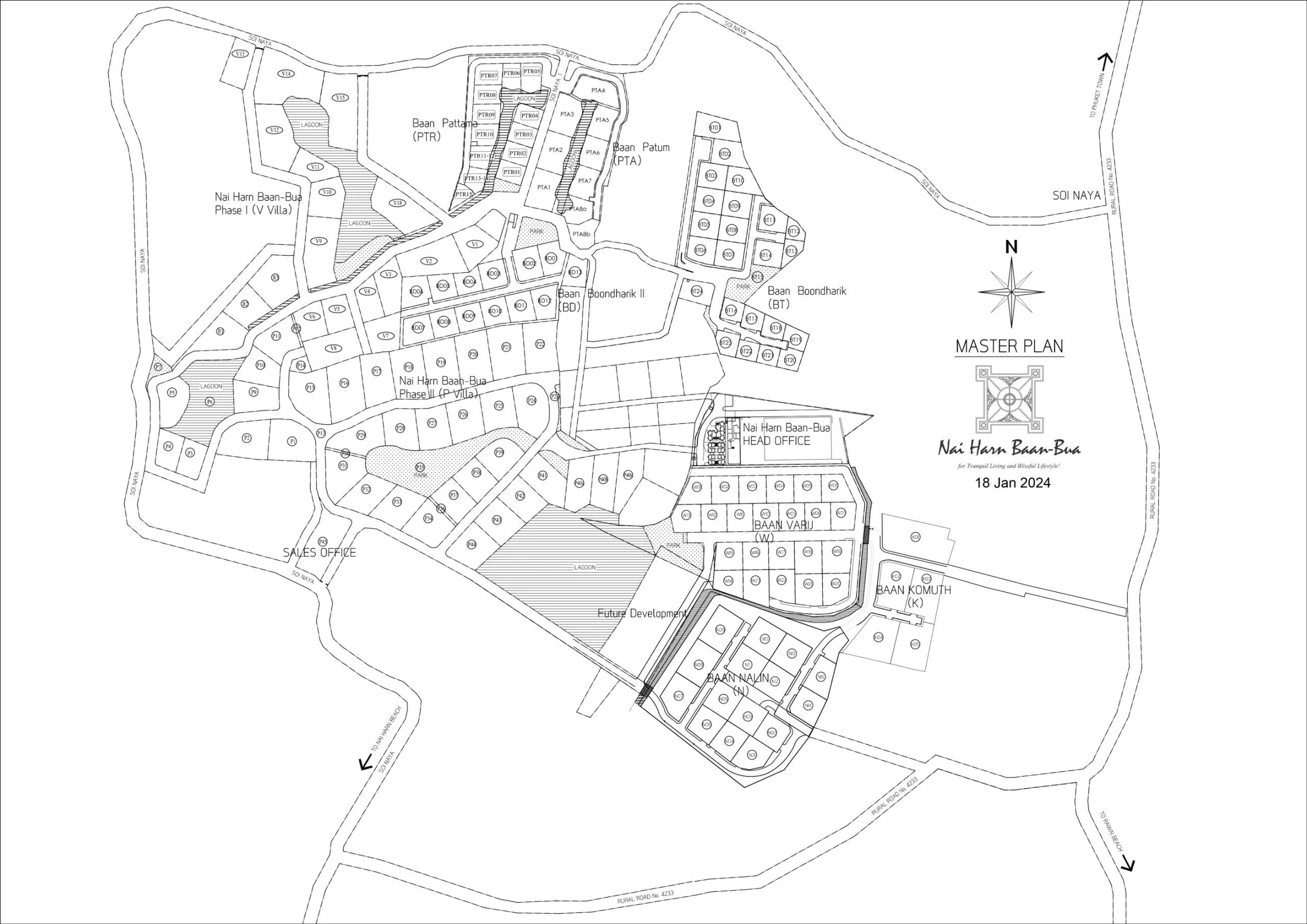 Baan-Bua Phase I включает 23 виллы от 300 м² с 3–7 спальнями, частными бассейнами, ландшафтными садами, террасами и современными кухнями. Высокие потолки и панорамное остекление наполняют дома светом; в отдельных виллах — виды на озеро, бассейн и сады. На территории работает менеджмент.