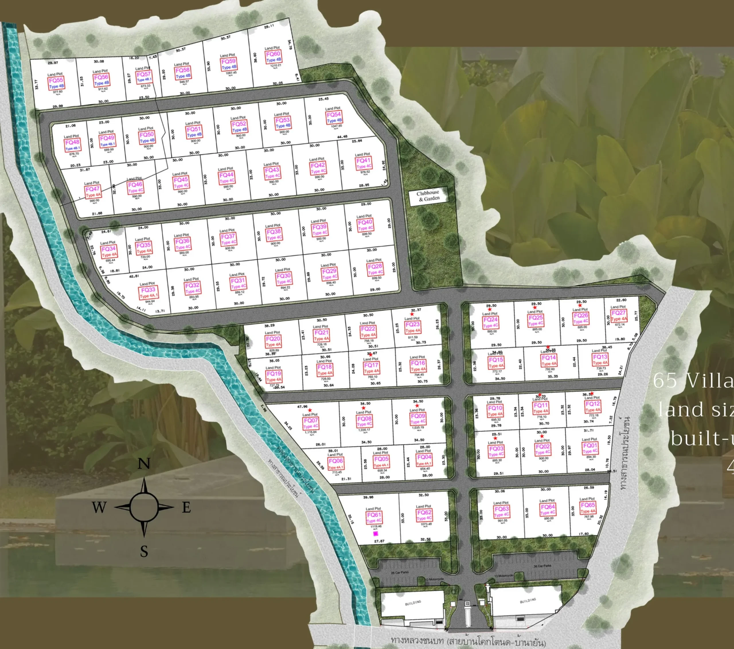 Аэрофотоснимок участков вилл с рекой и клубной зоной