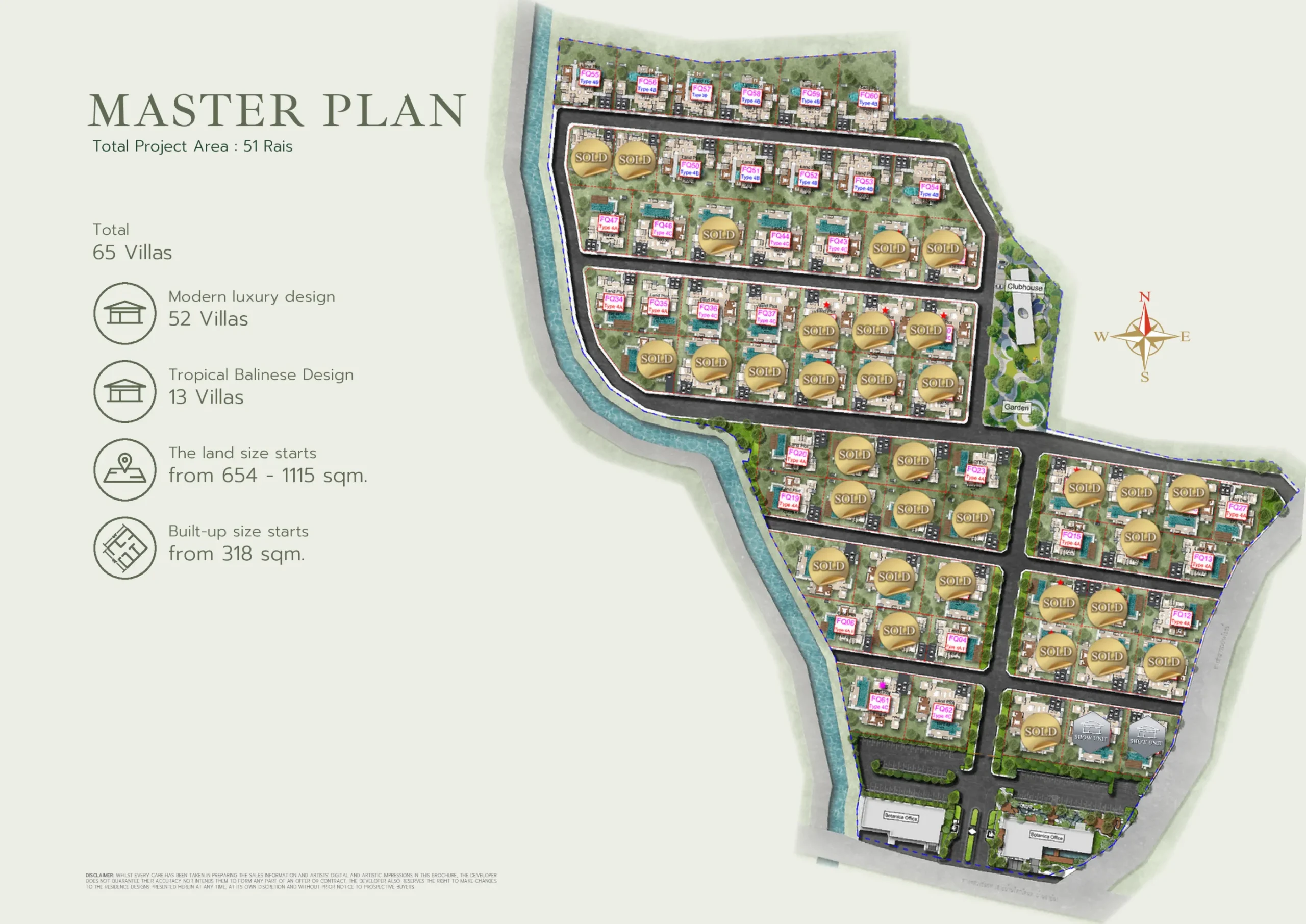 Аэросъемка генерального плана вилл с пометками Sold