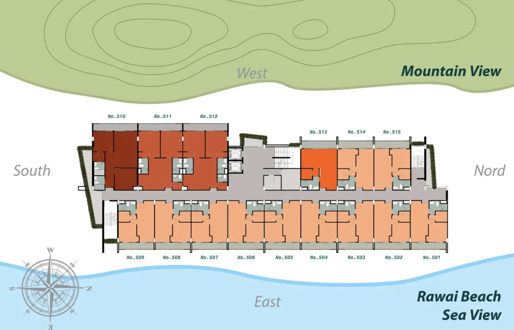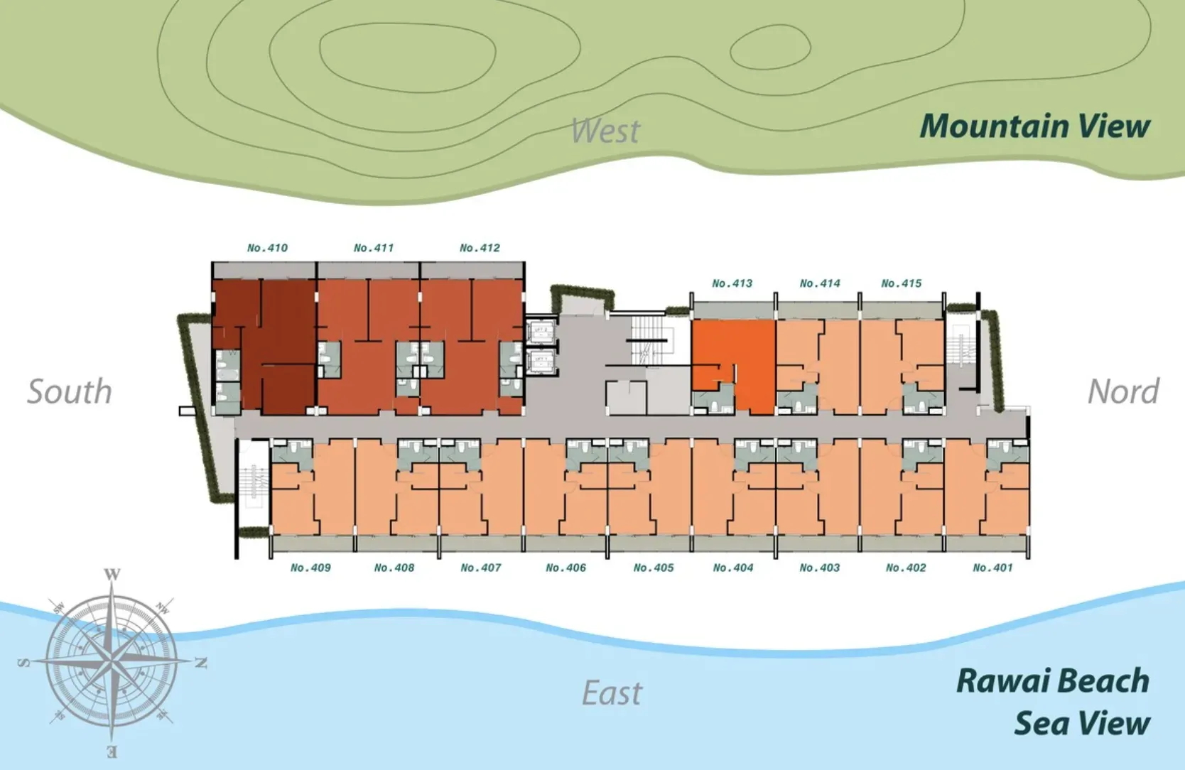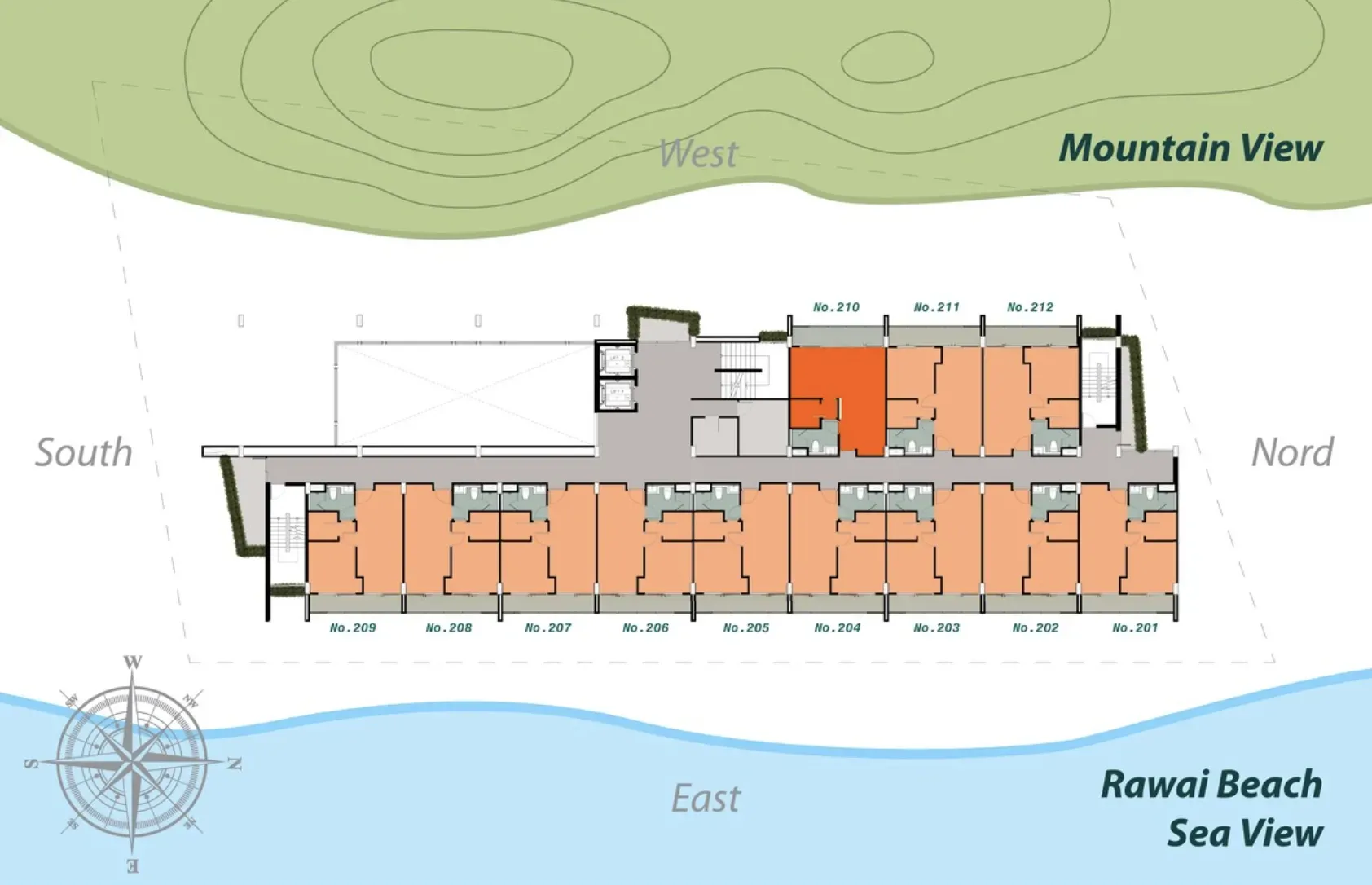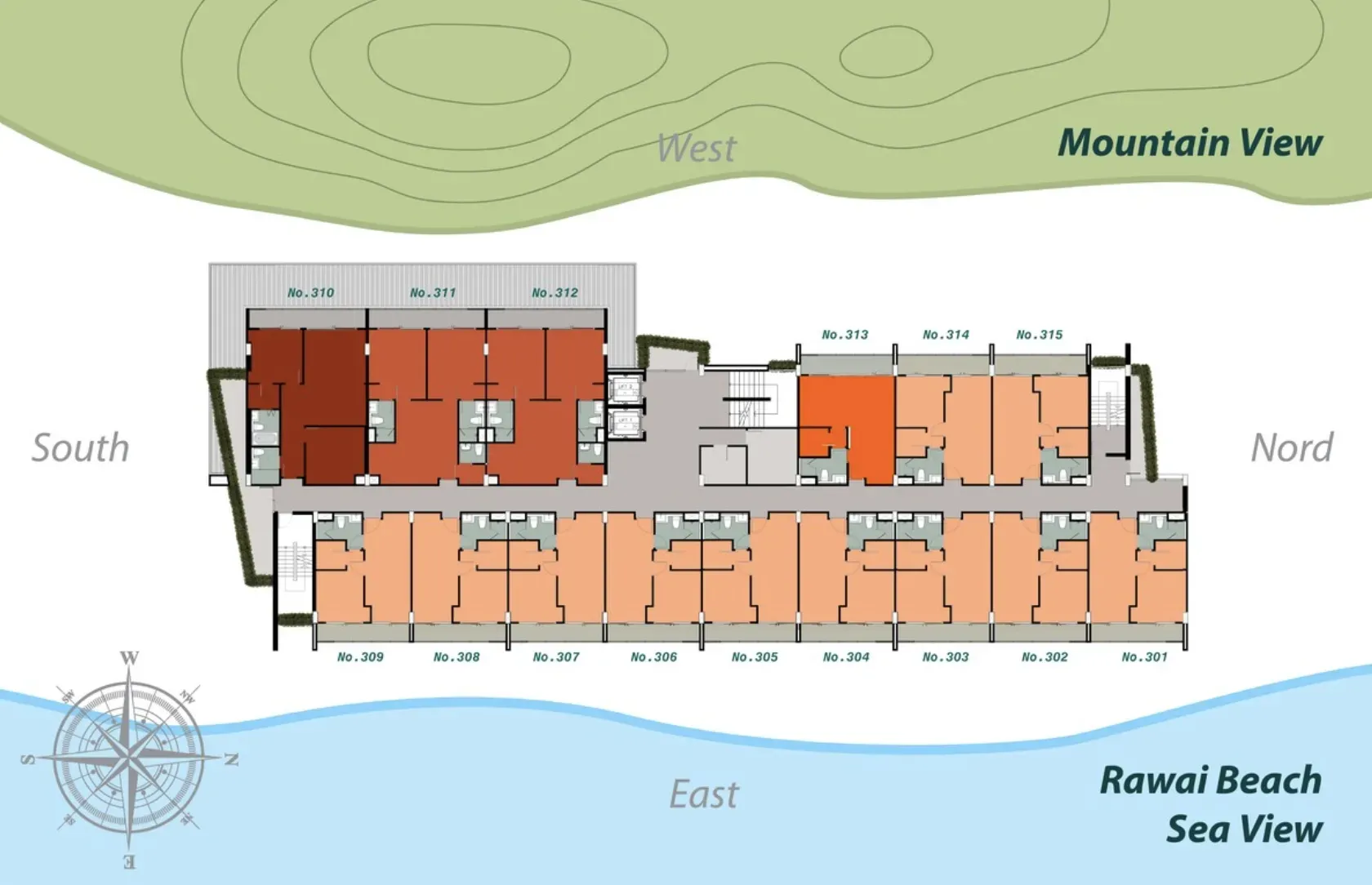 Продуманные планировки и функциональные решения: оборудованные кухни, кондиционеры, износостойкие материалы. 7 этажей, здание на склоне холма; многие квартиры с раскрытыми видами.
