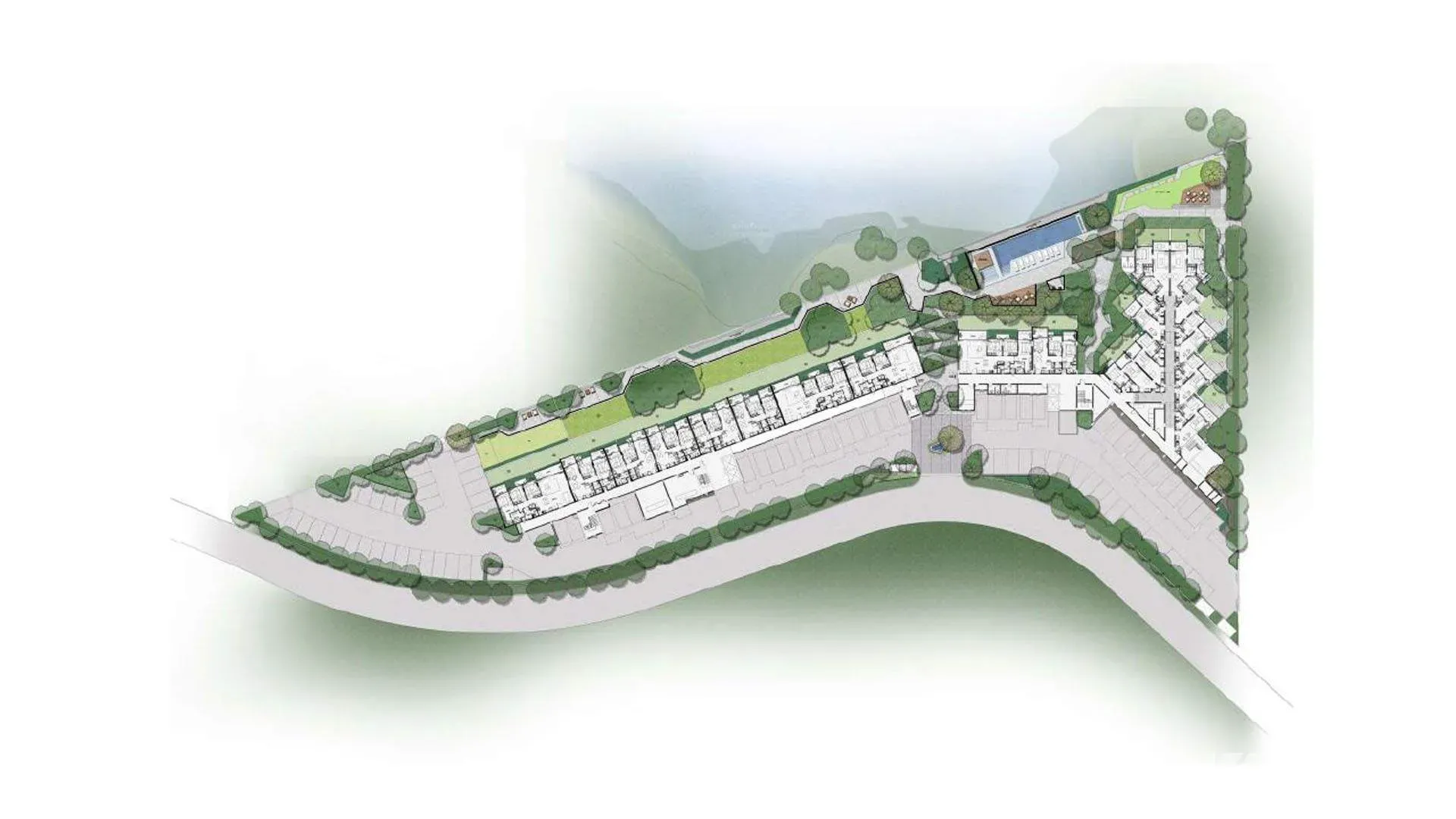 Аэро-план территории Кассия Пхукет с бассейнами и зеленью