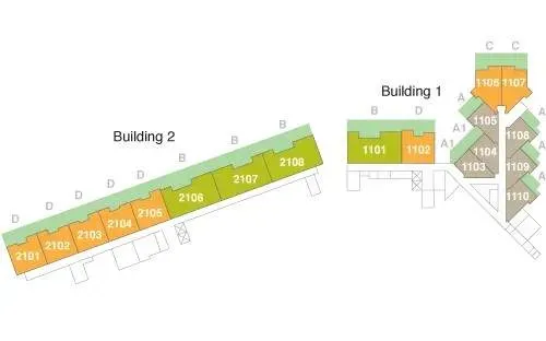 Схема участка с зданиями 1 и 2 и пронумерованными блоками