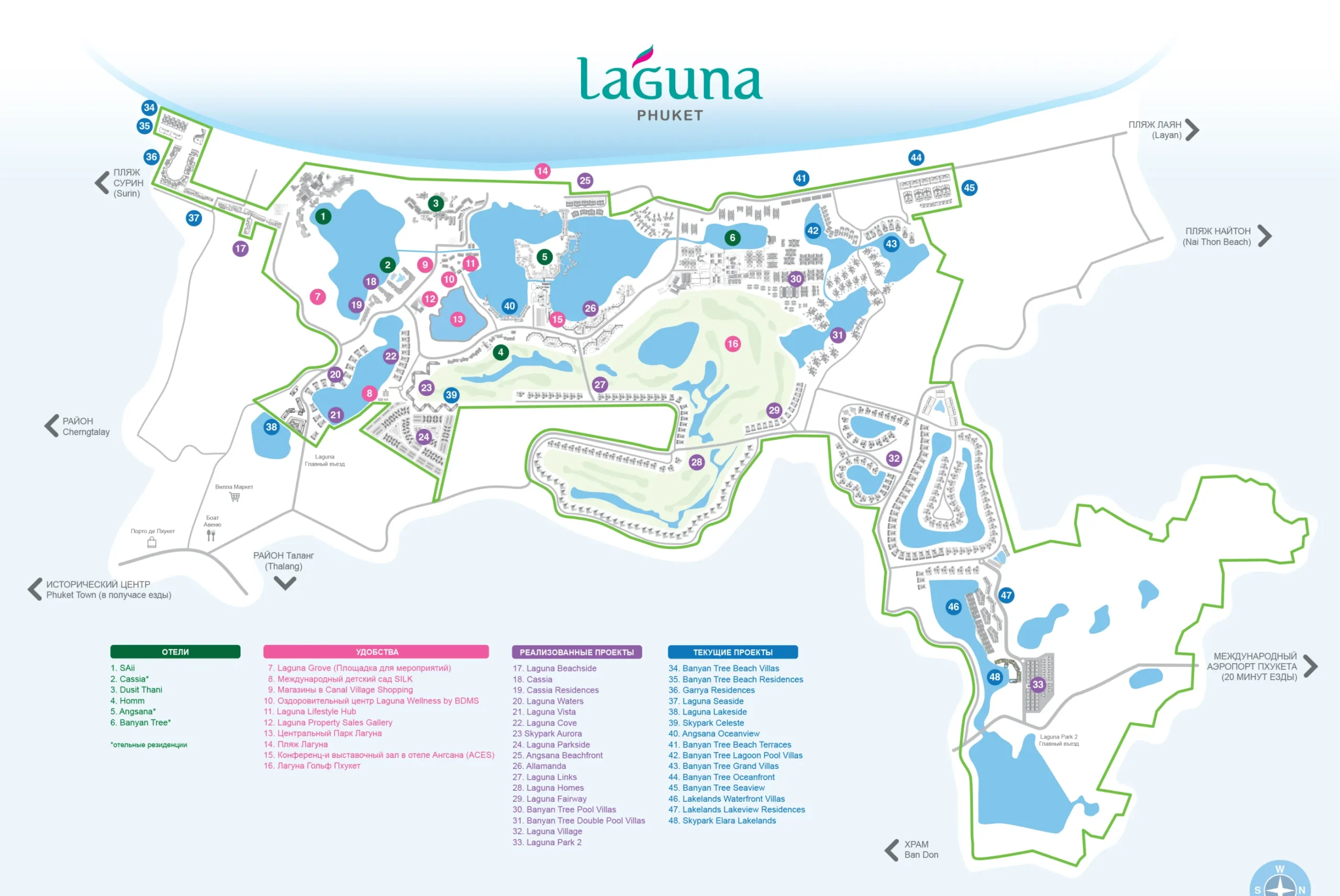Карта сверху курорта Laguna Phuket с лагунами и дорогами
