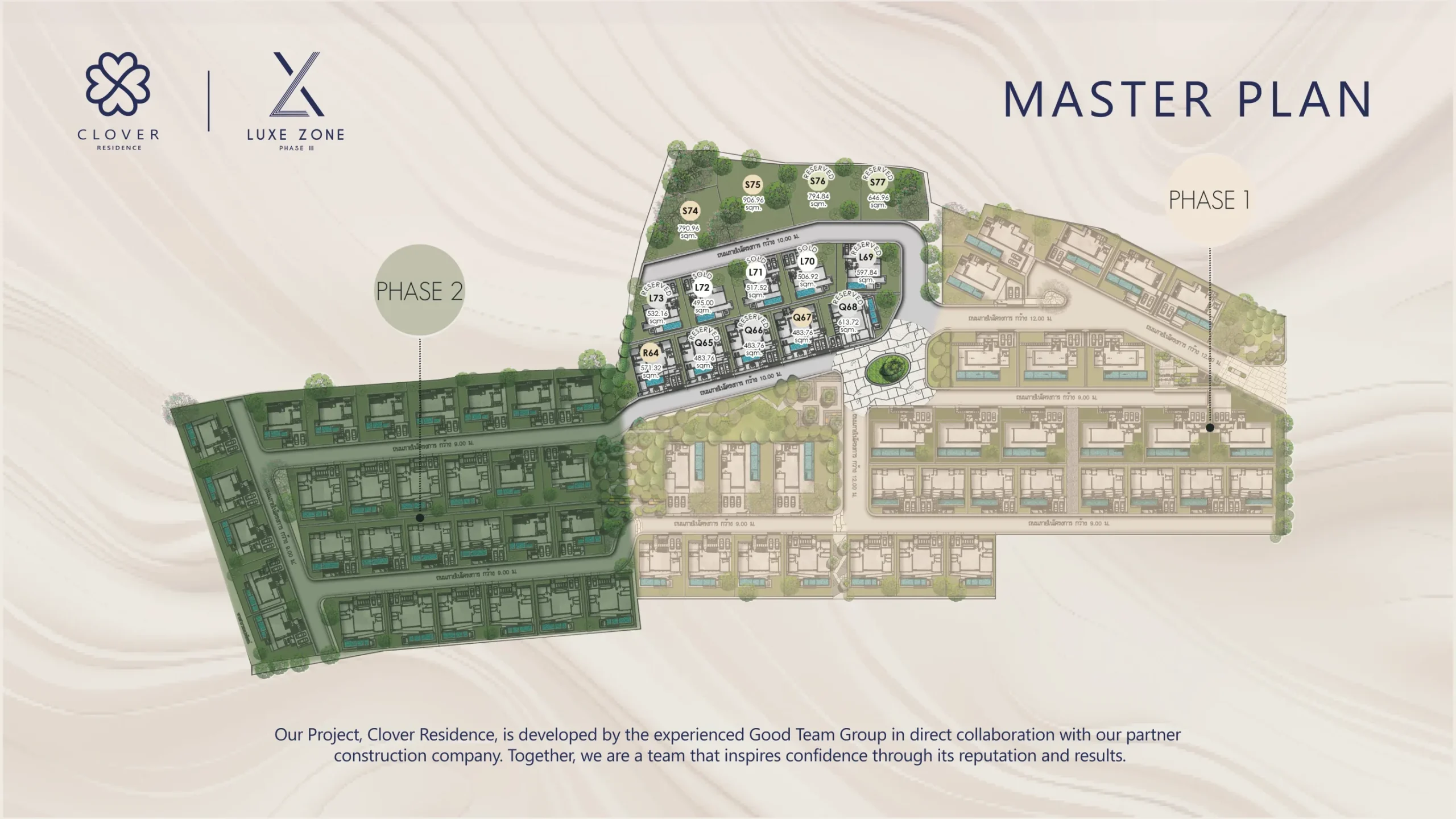 Clover Residence — современный комплекс в Банг Тао на равнинном участке: 1–2 этажа, виды на горы и бассейн, общественный сад, менеджмент и видеонаблюдение 24/7. Форматы Фрихолд/Лизхолд.