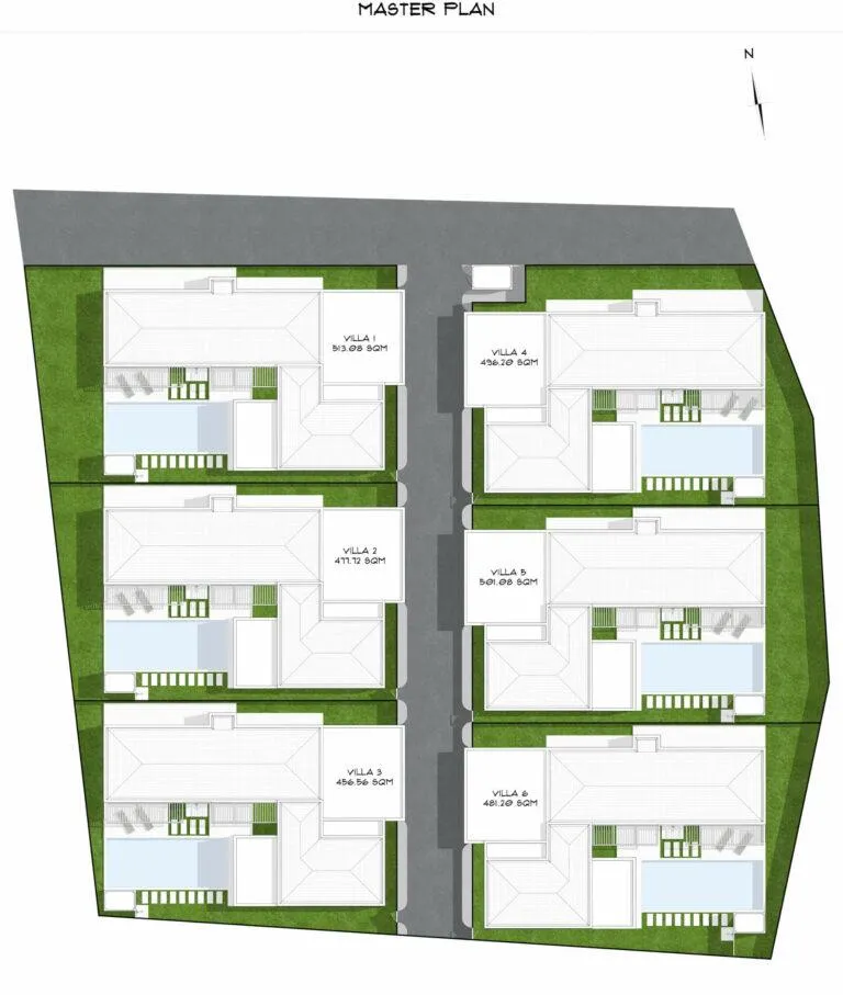 Аэрофотоплан вилл с центральной дорогой и бассейнами