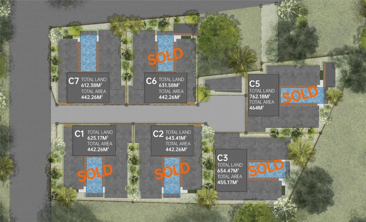 Sea Central Villa в Чалонге, Пхукет: одноэтажная резиденция с видами на бассейн и сад, формат владения Фрихолд/Лизхолд, менеджмент в комплексе и CCTV. Срок готовности — 12.2024, есть готовые к заезду объекты. 11,5 км до Карон, рядом Большой Будда, Wat Chalong, фитнес-центры, массаж и школы муай-тай.