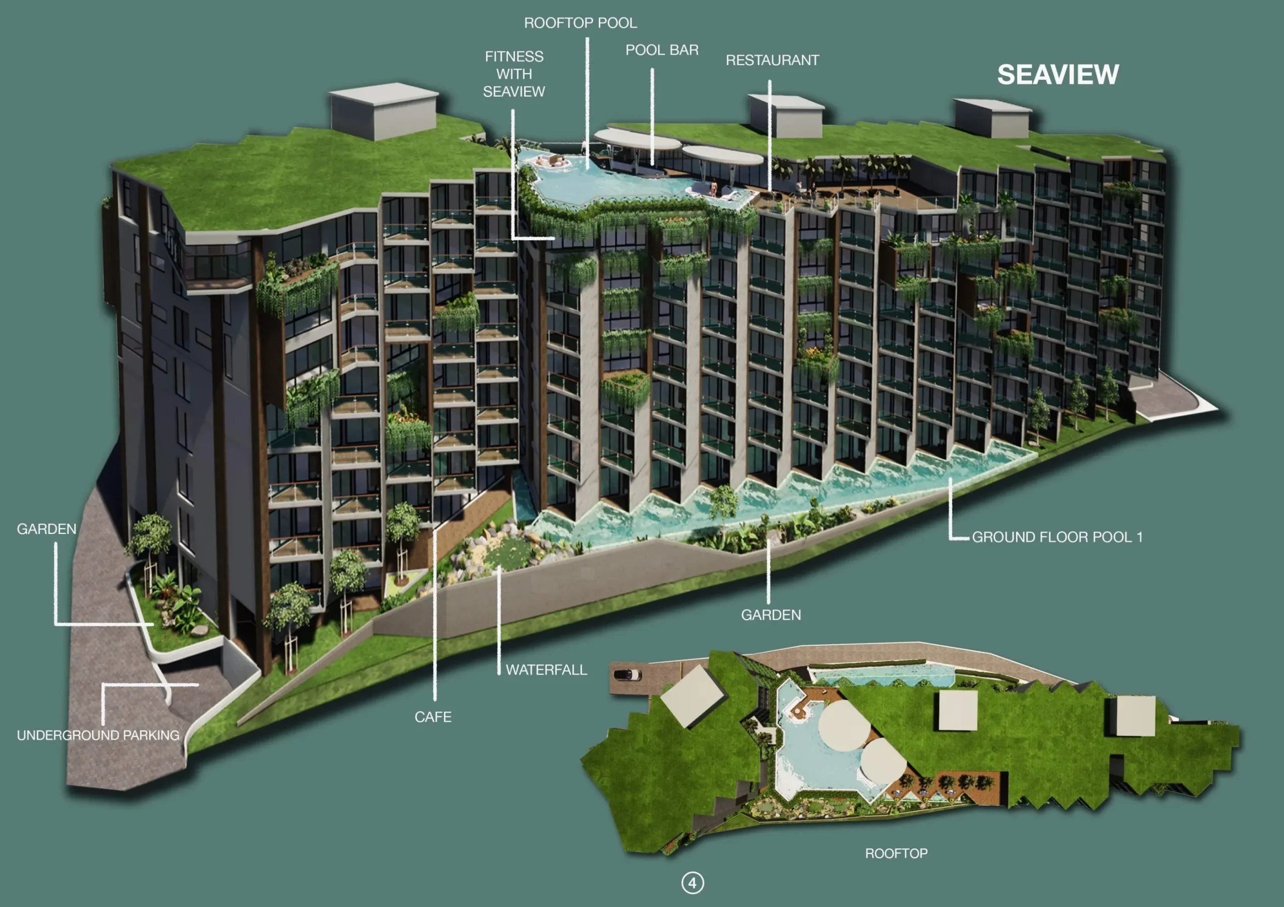 Serene Condominium — 8-этажный кондоминиум на равнинном участке. В зависимости от расположения квартиры открываются виды на город, море и горы. В комплексе есть парковка и пункт охраны. Оформление собственности — Фрихолд/Лизхолд. Срок завершения строительства — 12.2025.
