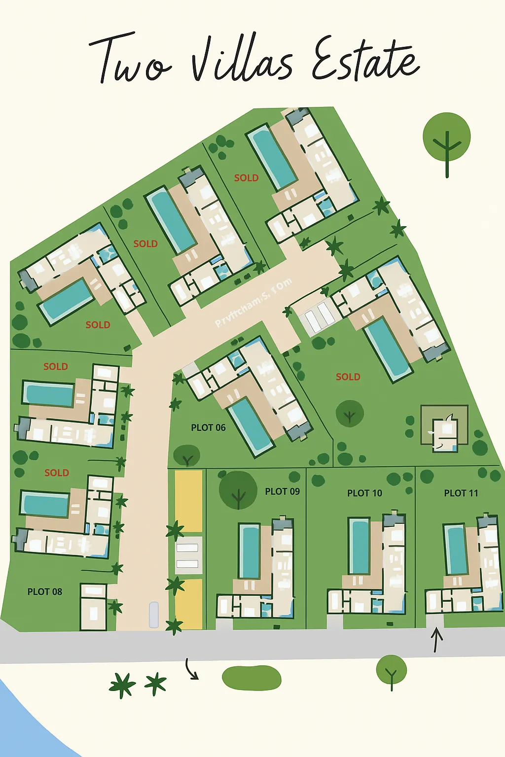 Two Villas Kokyang — это одноэтажные виллы с бассейнами в Раваи, в 2,7 км от пляжа Най Харн (около 5 минут на авто). Проект завершён в 08.2007 и сочетает комфорт проживания со стабильным арендным спросом. Планировки включают 2–4 спальни, гостиную open‑space, западную кухню и прямой выход к частному бассейну и террасе, с видами на бассейн и сад.